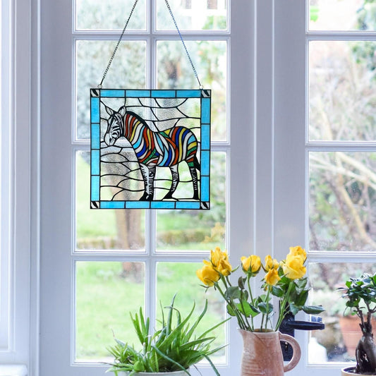 12in Square Zebra Theme Stained Glass Window Panel Suncatcher