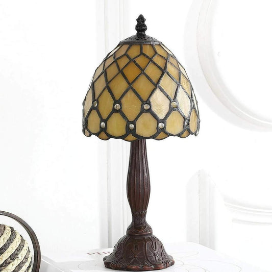 12in Bronze Finish Mini LED Yellow Tiffany Style Stained Glass Table Accent Lamp